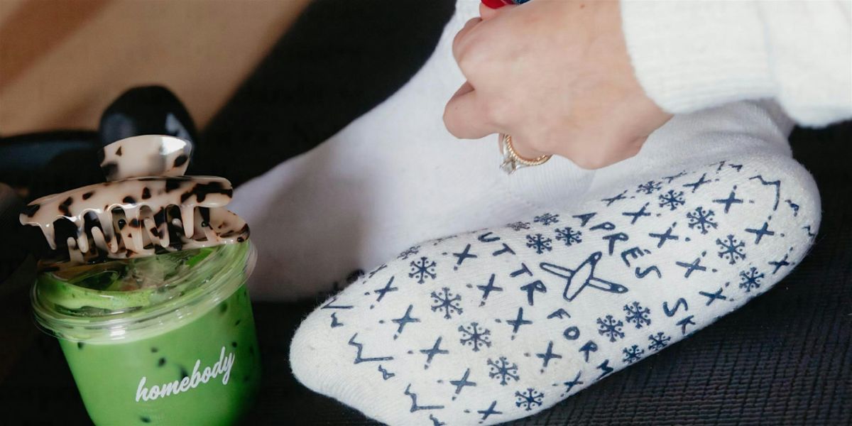 Each ticket purchase includes a Buttr Form Apres Ski pilates grip sock and specialty Homebody matcha latte.