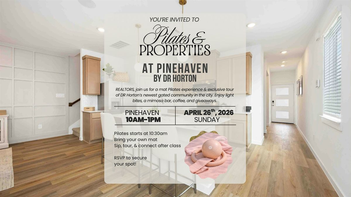 Join us at Pinehaven for an outdoor mat Pilates class, followed by light bites, drinks, and a tour of DR Horton’s newest gated community.