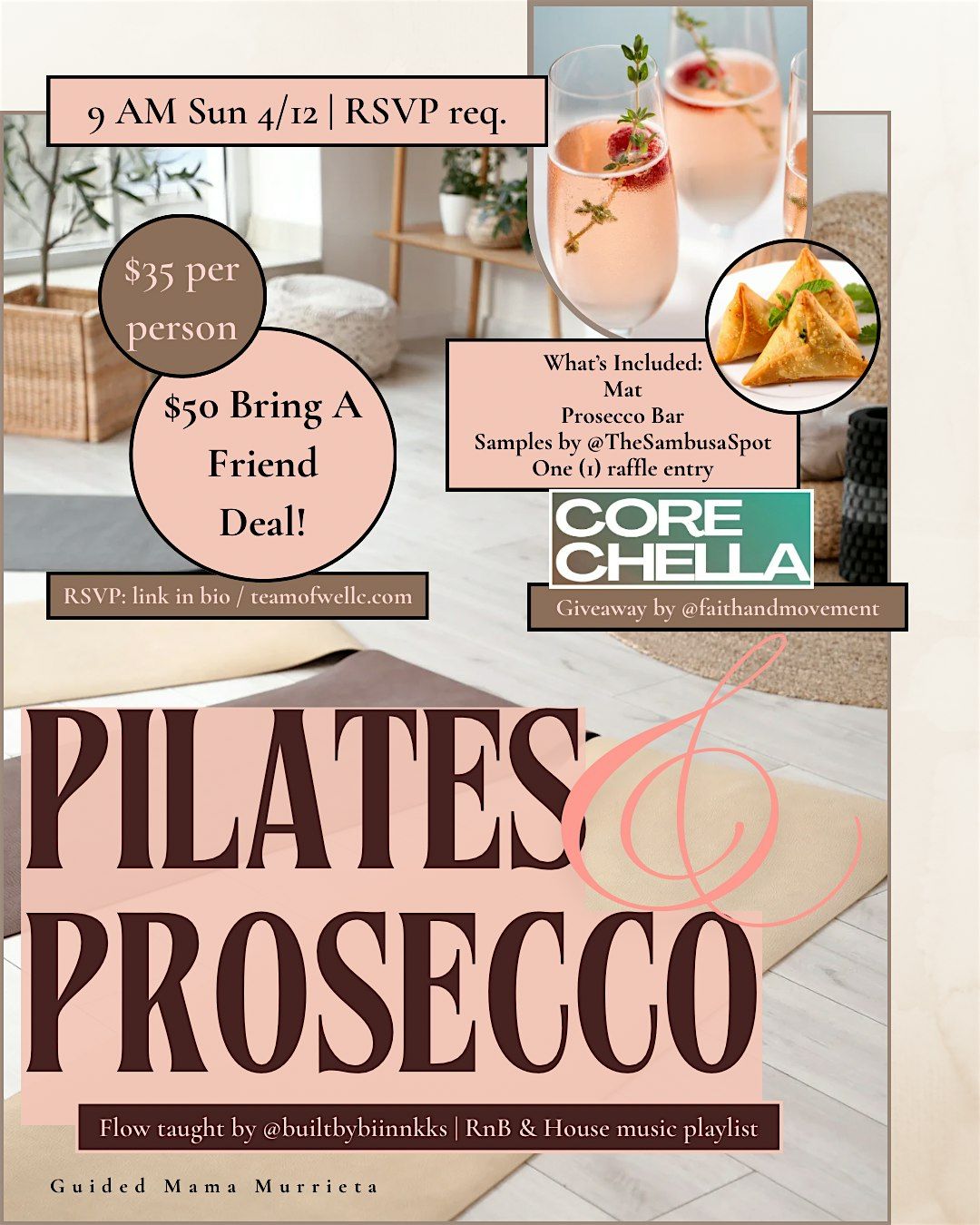 This intimate wellness experience blends gentle Pilates, a curated Prosecco bar, and community connection — the perfect “mom morning out” to start your week refreshed.