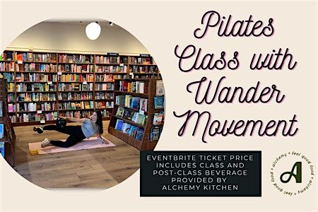 Join Wander Pilates for an Intermediate Mat Pilates class in the bookstore. Ticket price includes a post-class beverage from Alchemy Kitchen