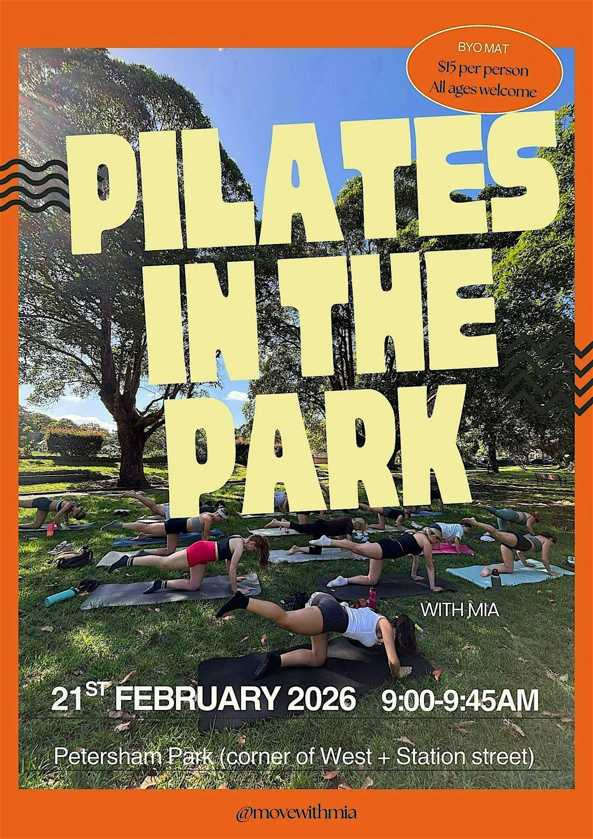 It's that time again! Join Mia for a session of Strengthening and Lengthening in the gorgeous Petersham Park, under the beautiful trees.