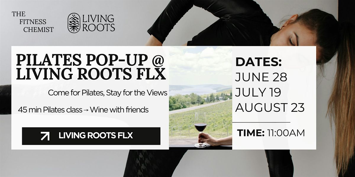 Join Julia Tiberio, Certified Pilates, Barre & Yoga Instructor, Lead Ambassador of Lumos Infrared Sauna + Cold Plunge and lululemon Ambassador for a fun way to kick off your week with a pilates class in the beautiful setting of Living Roots FLX (photos below). This in-person event is the perfect opportunity to unwind and have fun with friends (and includes a beverage after class!). The event will be held outdoors(covered space), with additional space indoors depending on participation and is open to all levels of fitness. Don't miss out on this unique experience to combine exercise with a tasty beverage. Grab your mat and get ready to sip and mobilize!
