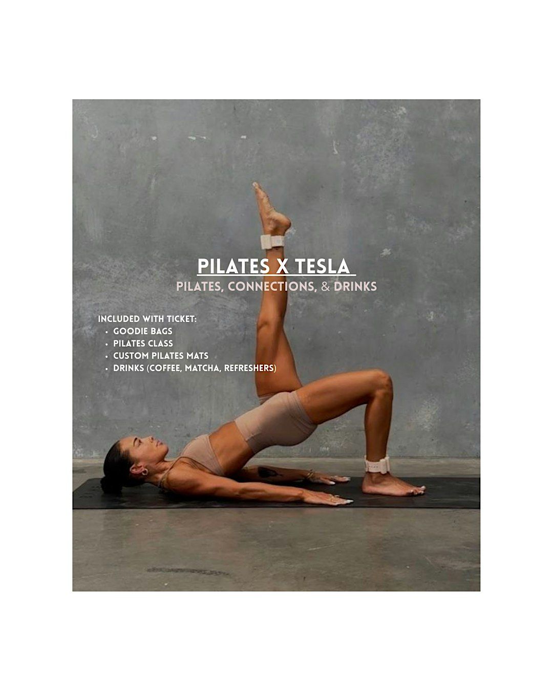 Join us for our 2nd wellness event of the year (since our first sold out in less than 24 hours) PILATES x TESLA with the Sisterhood Social Club!