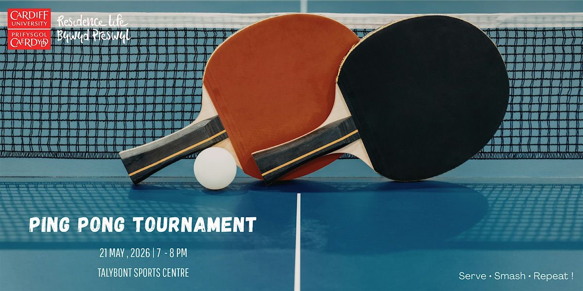 Cymerwch eich tocyn am ddim a chyfarfod â ffrindiau newydd ar gyfer gêm ping pong hwyl a chymdeithasol! Mae'r digwyddiad hwn ar agor i holl fyfyrwyr Prifysgol Caerdydd. Nid oes angen profiad blaenorol — dim ond dod â'ch egni, dillad chwaraeon clyd, a photel ddŵr.