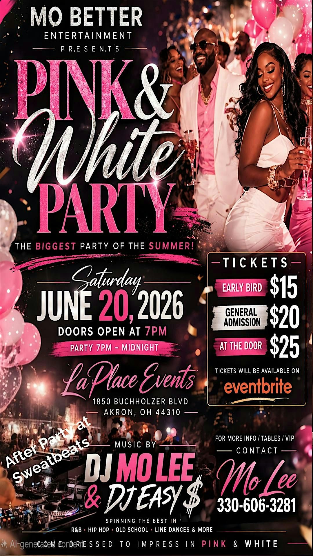 Mo Better Entertainment Presents it's Annual Pink and White Party June 20 7pm Midnight at LaPlace..Live Music, Free Food, Great Fun.