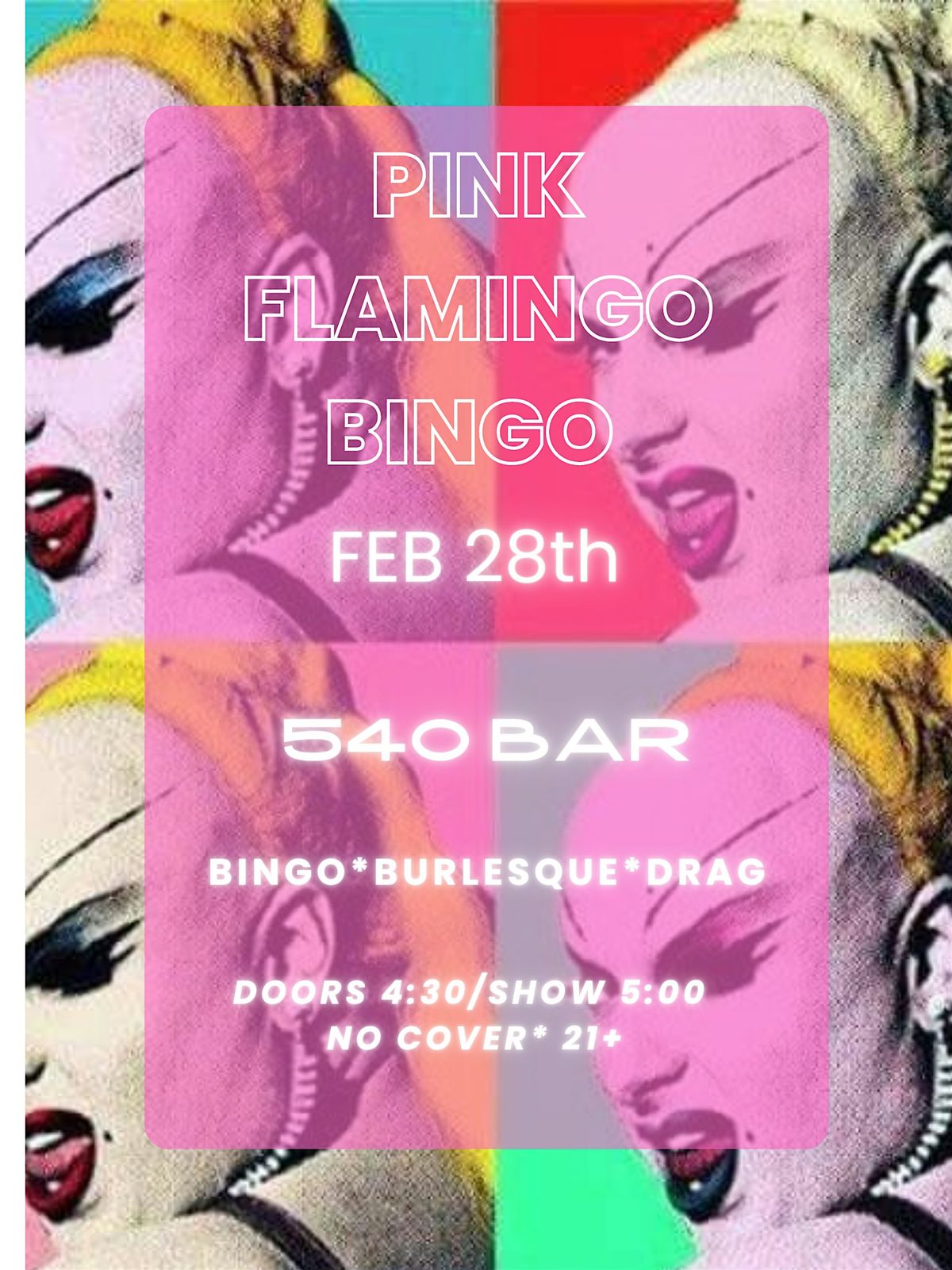 Pink Flamingo Bingo is back in 2026 with an incredible cast of Drag & Burlesque Bingo!!!No Cover