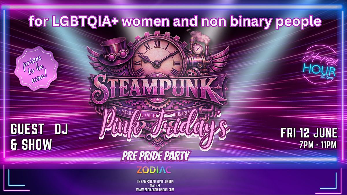 Pink Friday at ZODIAC Bar on Friday 12th June now comes with a warm, welcoming flow to the night: a 7pm–9pm Happy Hour, plus a dedicated First‑Timers Hour from 7pm–8pm designed to help newcomers ease in, meet people, and feel instantly part of the community. It layers beautifully onto the Pre‑Pride Steampunk Party crafted for LGBTQIA+ women and non‑binary people, complete with a Pride show, guest DJ, and prizes.