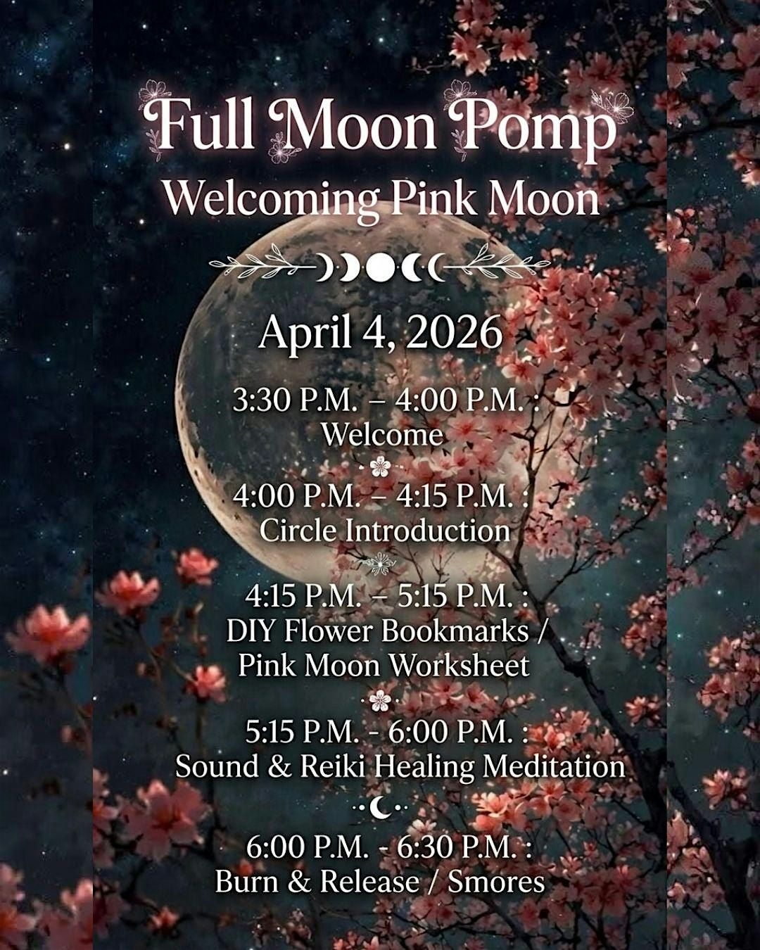 Join us for an intentional evening under the Pink Full Moon, a sacred time of renewal, emotional release, and new beginnings. Rooted in the energy of spring, this moon symbolizes growth, transformation, and the gentle unfolding of what is ready to bloom in your life.
