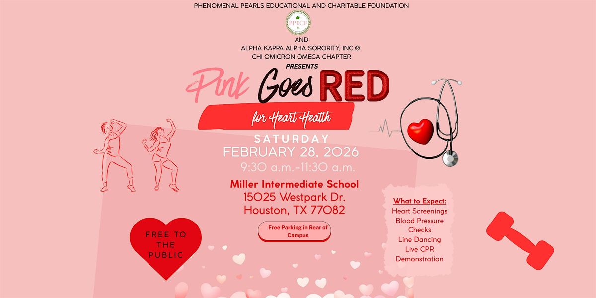 Join the Ladies of Alpha Kappa Alpha Sorority Incorporated® Chi Omicron Omega Chapter and the Phenomenal Pearls Educational and Charitable Foundation, as we turn awareness into action at our Pink Goes Red event on February 28th in recognition of Heart Health Awareness Month.