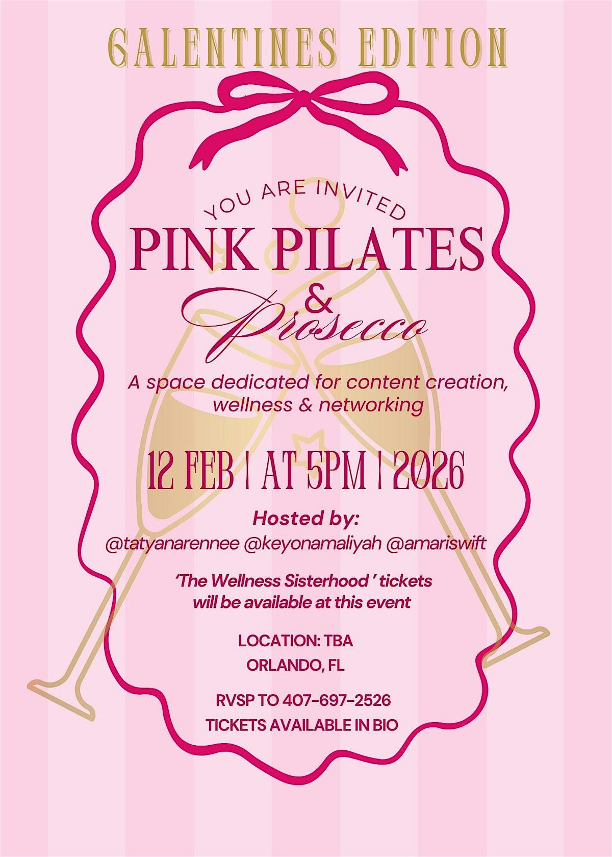 Get ready for a fun workout session that blends the calm strength of Pilates with a splash of bubbly! Join us in Orlando, FL for Pink Pilates & Prosecco—an event that’s all about feeling good, moving your body, and a champagne toast. Perfect for all levels, so grab your friends this is an event you dont wana miss!