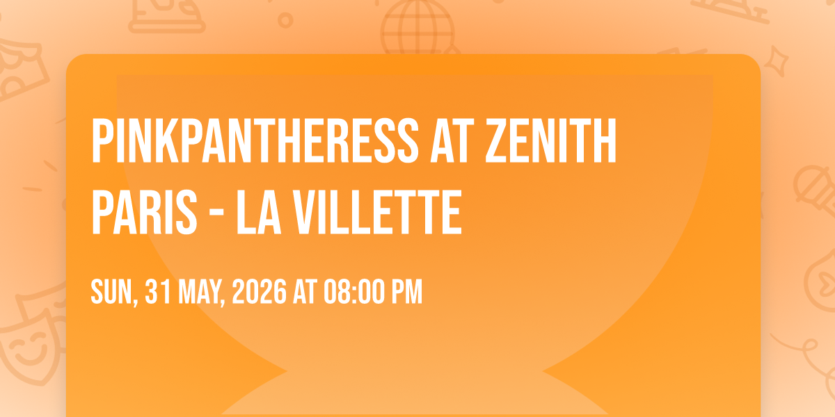 ✨ Enter a world of endless possibilities at PinkPantheress at Zenith Paris - La Villette, where every moment tells a story! 🏛️ The stunning Zenith Paris - La Villette in vibrant Pantin, IL transforms into a realm of wonder on May 31st, 2026 at 08:00 PM. 🌟 They have crafted an experience that goes beyond the ordinary, combining elements of surprise, delight, and pure entertainment. Every detail has been thoughtfully considered to ensure your journey with us is nothing short of extraordinary. 🎯 Join fellow adventure seekers and memory makers in this celebration of imagination and innovation. 🎊 Reserve your spot today and be part of something truly special!