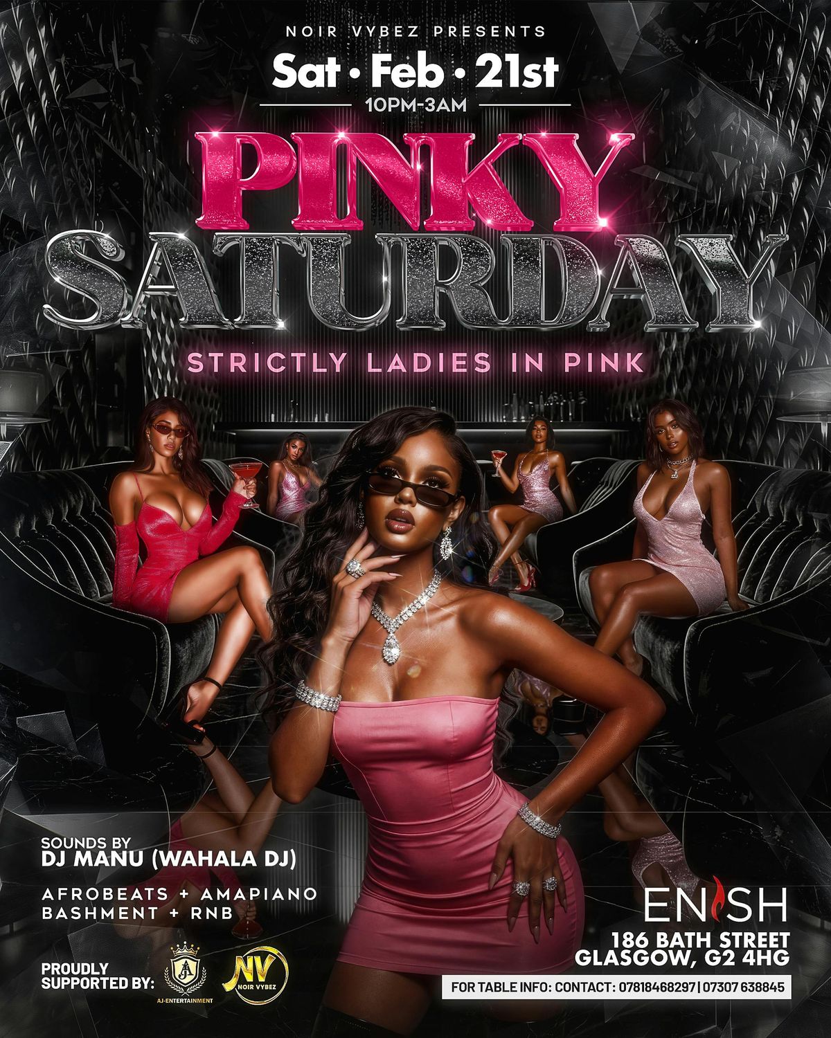 Pinky Saturday is a high-energy nightlife experience bringing glamour, confidence, and elite vibes to the city.The theme celebrates women in pink, bold, classy, and unapologetic while welcoming everyone who loves good music, good energy, and a premium night out.