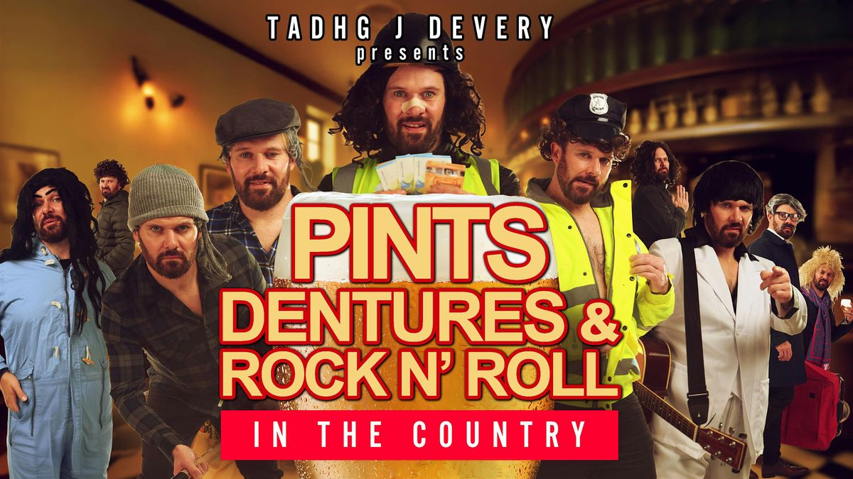 Pints, Dentures & Rock ’n’ Roll sees Tadhg J Devery at his absolute best — a wild, unstoppable, character-packed comedy hurricane.