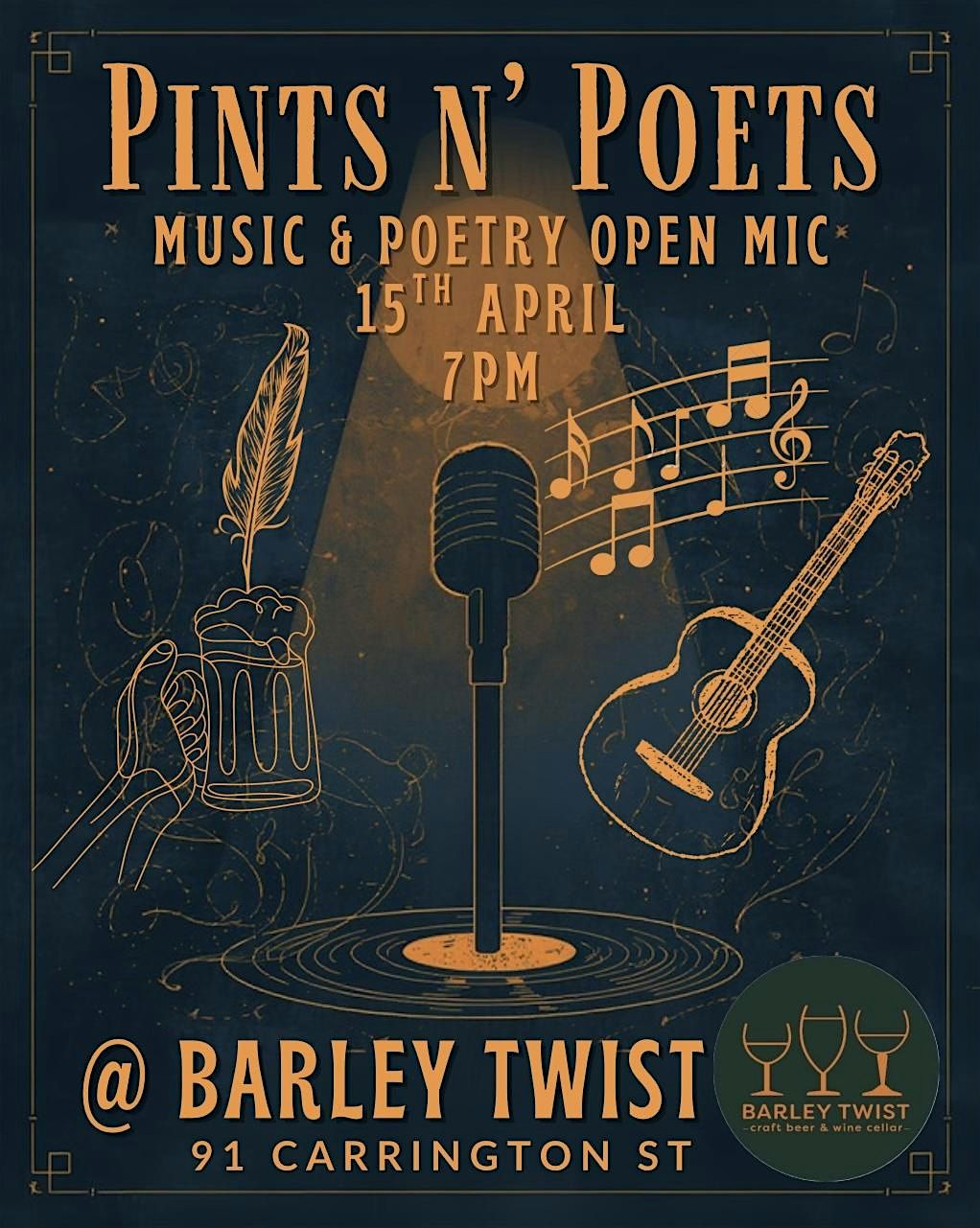 Pints n’ Poets returns Wednesday 15th April! Join us at the Barley Twist for a night of epic verse and groovy tunes!About this Event