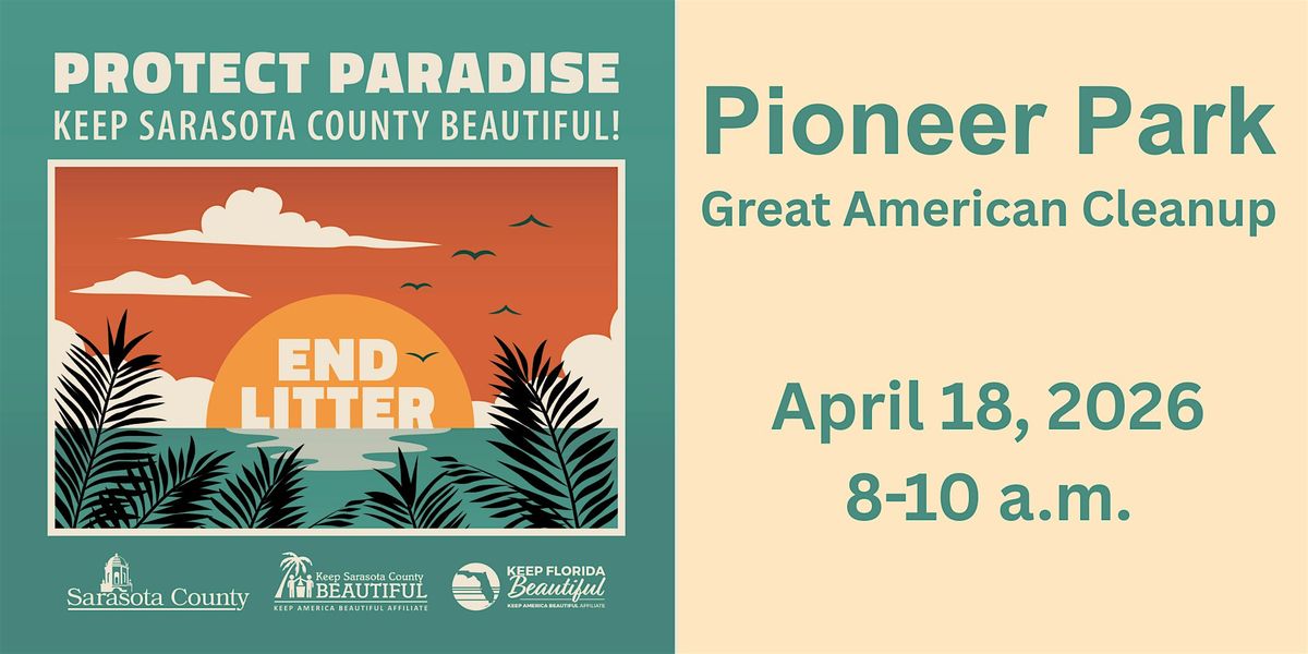 Join Keep Sarasota County Beautiful and Sarasota County on Saturday, April 18, 2026, at Pioneer Park for a morning of community service and positive impact. Locally, as part of the Great American Cleanup, a nationwide initiative led by Keep America Beautiful (KAB), we’re uniting with volunteers across the country to remove litter, revitalize public spaces, and make our communities cleaner and more vibrant.