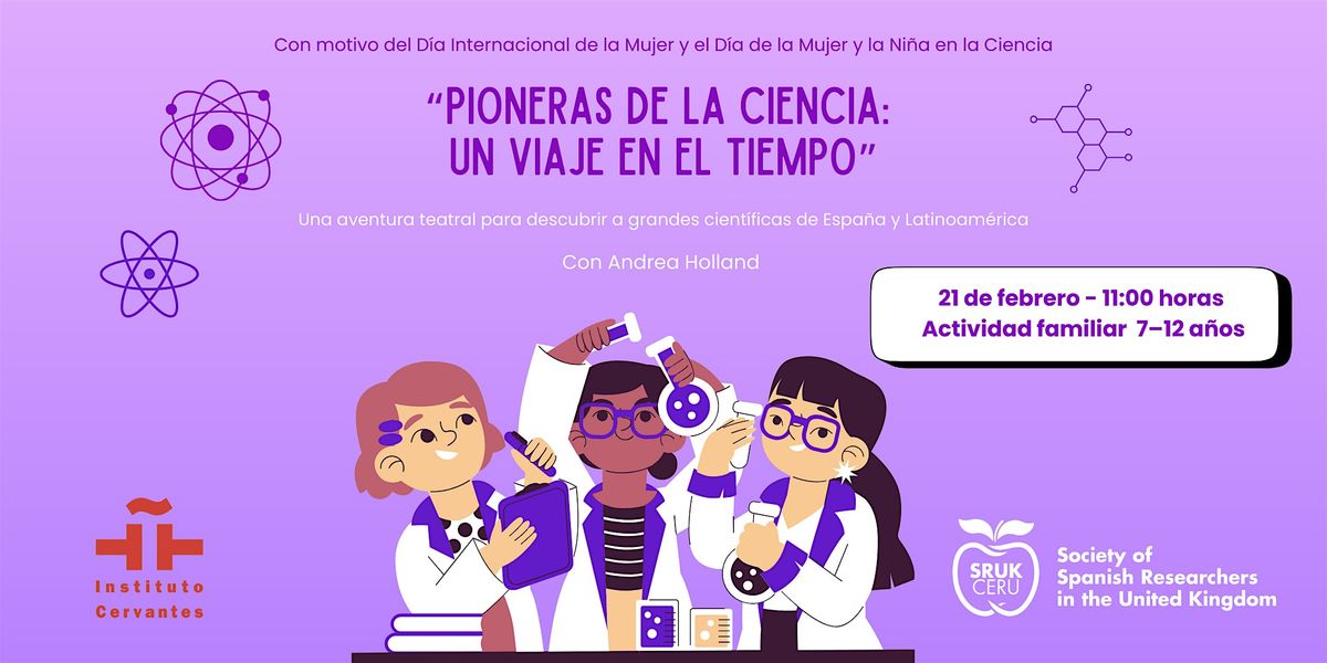 The Reina Sofía library at Instituto Cervantes London invites families to enjoy a fun, educational storytelling led by Andrea Holland, an actress and performing arts creator with extensive experience in activities for children. On the occasion of International Women’s Day (8 March) and the International Day of Women and Girls in Science (11 February), the event celebrates the talent and curiosity of women who have advanced science throughout history.