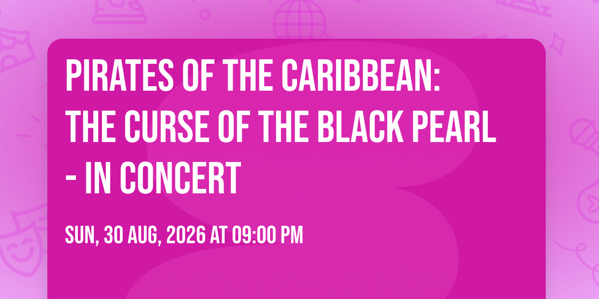 📍 Location: 51.062565, -114.09263🎉 Welcome to Pirates of the Caribbean: The Curse of the Black Pearl - In Concert, where the impossible becomes possible and dreams take flight! 🏛️ Join us at Southern Alberta Jubilee Auditorium in the heart of Calgary, AB for an event that will redefine your expectations. 📅 On August 30th, 2026 at 09:00 PM, witness the transformation of space and time into something truly magical. ✨ It's a curated experience combining the best of innovation, entertainment, and community spirit, creating moments that will be remembered for years to come. Whether you're a first-time visitor or a seasoned enthusiast, prepare to be amazed. 🎊 Book now to ensure your place in this unforgettable experience!