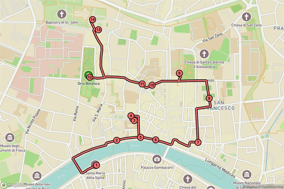 - Stops: 14 captivating landmarks including Leaning Tower of Pisa, Church of Santa Maria della Spina, Botanical Garden of Pisa