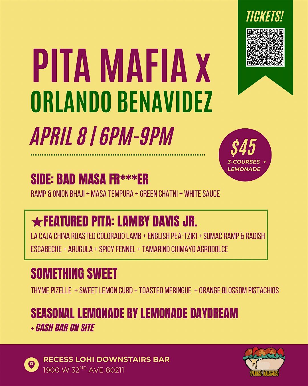 La Caja China Roasted CO Lamb + English Pea-tziki + Sumac Ramp & Radish Escabeche + Arugula + Spicy Shaved Fennel +Tamarind Chimayo Agrodolce