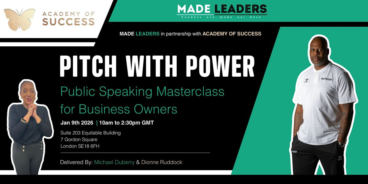 Join Elite Performance Coach and former Premier League footballer Michael Duberry, alongside Academy of Success founder Dionne Ruddock, for a high energy, practical and transformational workshop designed to elevate the way you pitch, present and speak about your business.