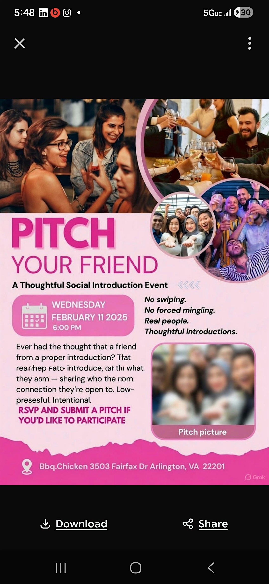 A low-pressure meetup where friends introduce friends. No swiping, just thoughtful pitches and a relaxed social mixer afterwardAbout this Event