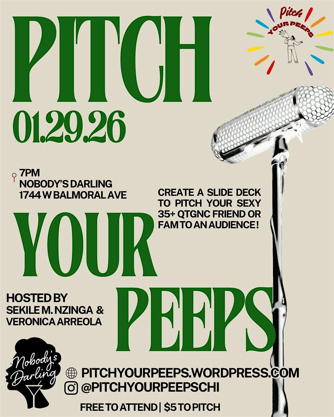 Pitch Your Peeps Queer Slide Deck Match Making are affirming events that center queer relationships by inviting folx to pitch their (35+) queer, trans, or gender expansive peeps to others who are interested in finding their match–No dating apps! No swiping! No phones!-- just a slide deck lovingly made by friends or family about their baddies and beloveds to an audience full of potential connections.