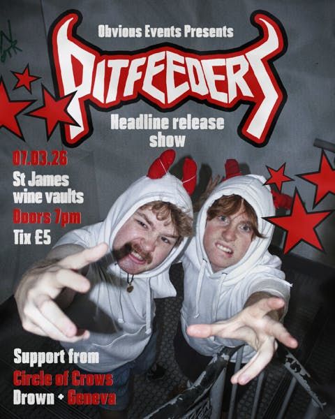 PITFEEDERS SINGLE RELEASE SHOW! Come down to hear the new song “I DONT BITE” live in the hallowed halls of St James Wine Vaults! This show will be accompanied by the amazing Geneva, Drown and Circle of CrowsDisclaimer: