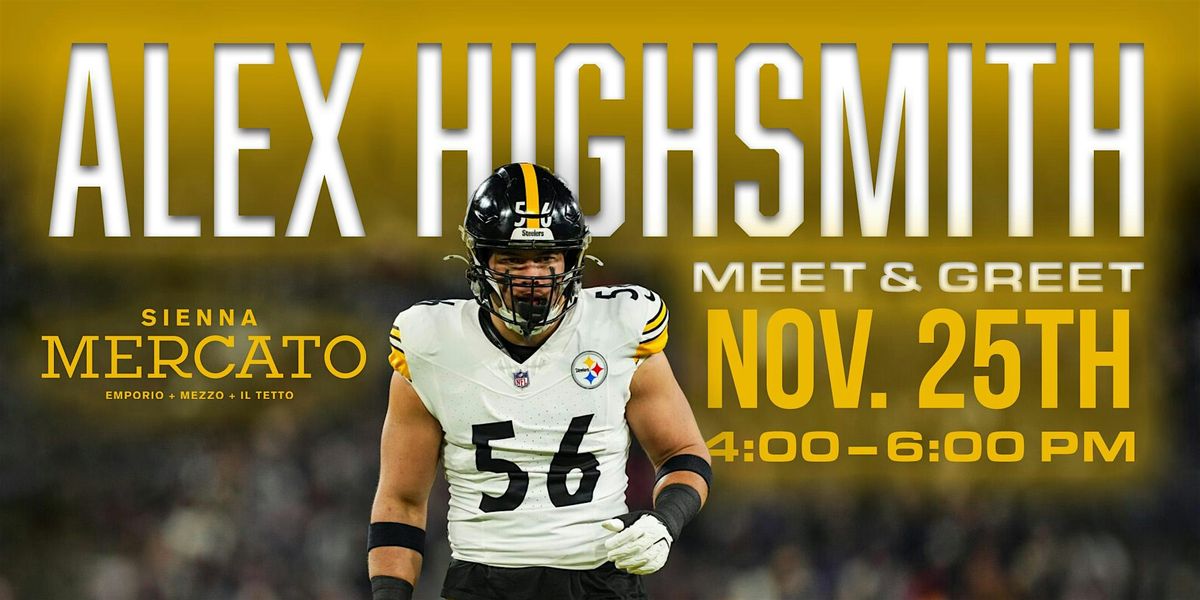 Join us for an unforgettable meet & greet with Pittsburgh’s own Alex Highsmith on Tuesday, November 25th from 4:00–6:00 PM. This is your chance to get up close with one of the most electric players in the game—snap photos, grab autographs, and feel the energy of true hometown pride.