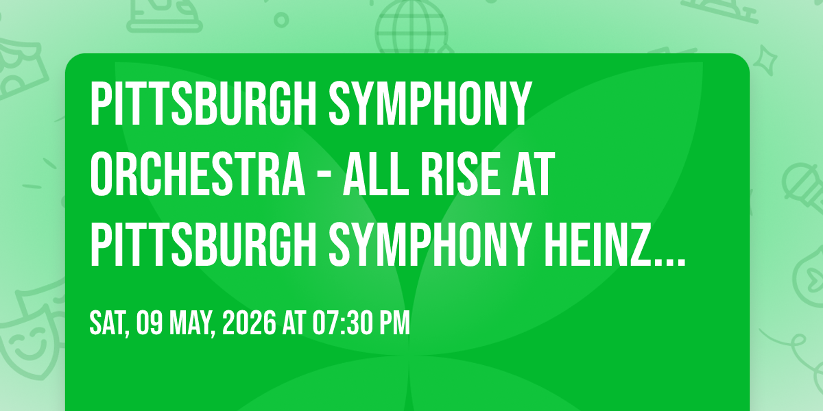 🎉 Welcome to Pittsburgh Symphony Orchestra - All Rise at Pittsburgh Symphony Heinz Hall, where dreams come alive and possibilities are endless! 🏛️ Join us at Pittsburgh Symphony Heinz Hall in the heart of Pittsburgh, PA for an event that defies expectations. 📅 On May 9th, 2026 at 07:30 PM, be part of something truly extraordinary as we bring together innovation, entertainment, and pure magic. ✨ Every aspect has been carefully designed to ensure an unforgettable experience for all our guests. Whether you're seeking adventure, inspiration, or simply a break from the ordinary, this event promises to deliver beyond your wildest dreams. 🎊 Prepare for a journey into the extraordinary!