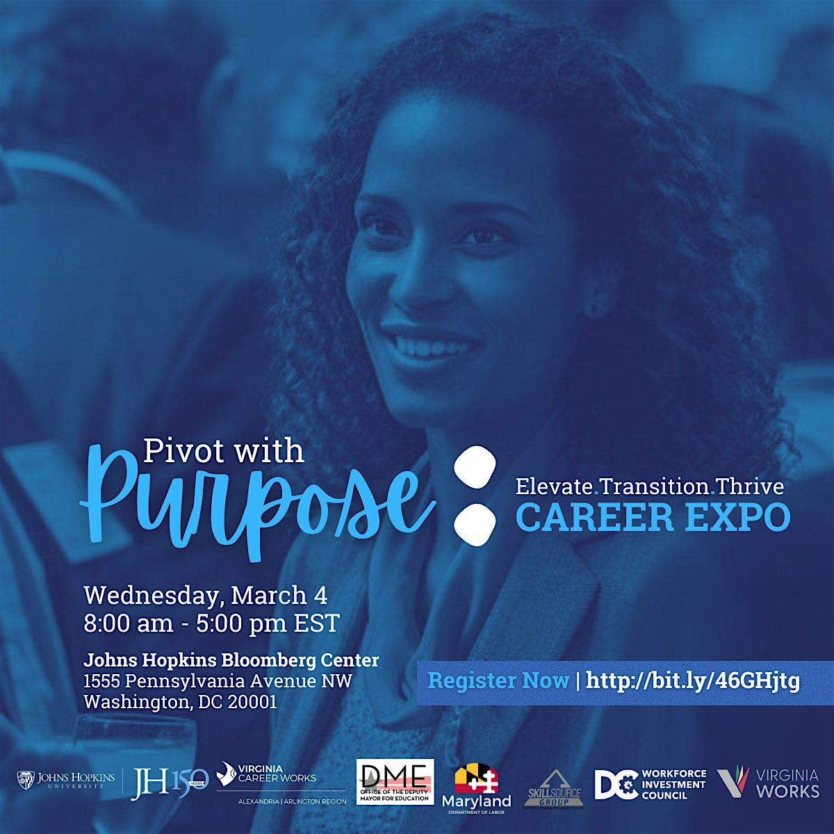 The Pivot with Purpose Career Expo is a one-day, high-impact experience created for mid- to senior-level professionals who are navigating career transition, exploring new opportunities, or seeking renewed momentum in their professional journey.