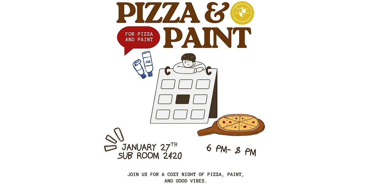Come join the CSA on Tuesday January 27th in SUB room 2420 from 6:00 P.M. - 8:00 P.M. for a pizza and paint night. Whether you're an experienced painter or someone who has never painted before this will be the perfect night to eat some good food, meet CSA members and other criminology students, and test out your artistic skills!