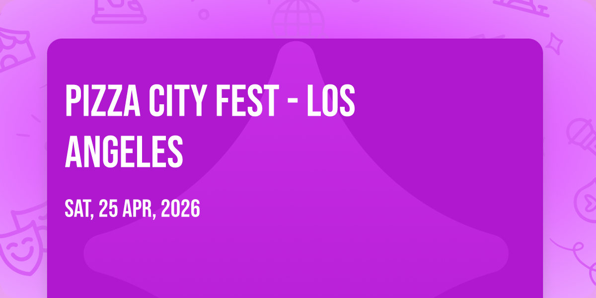 📍 Location: 34.0448, -118.265🌟 Journey into wonder at Pizza City Fest - Los Angeles, where extraordinary experiences await around every corner! 🏛️ Set against the backdrop of L.A. Live in dynamic Los Angeles, CA, this event promises to exceed all expectations. 📅 Join us on April 26th, 2026 at 08:00 PM for a celebration that combines innovation, entertainment, and community spirit in perfect harmony. ✨ There will be an atmosphere where memories are made and stories come alive, ensuring every guest experiences something truly remarkable. 🎊 This is more than just an event; it's a journey into the extraordinary!