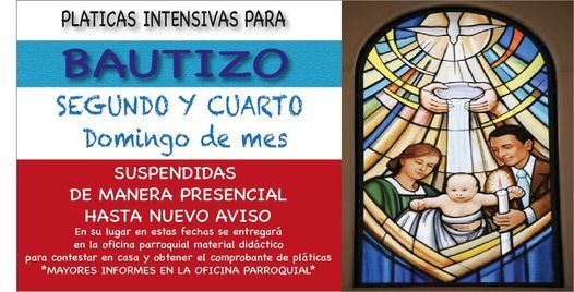 Pláticas Intensivas para papás y padrinos de niñ@s que reciben el sacramento del BAUTISMO¡SUSPENDIDAS DE MANERA PRESENCIAL HASTA NUEVO AVISO!