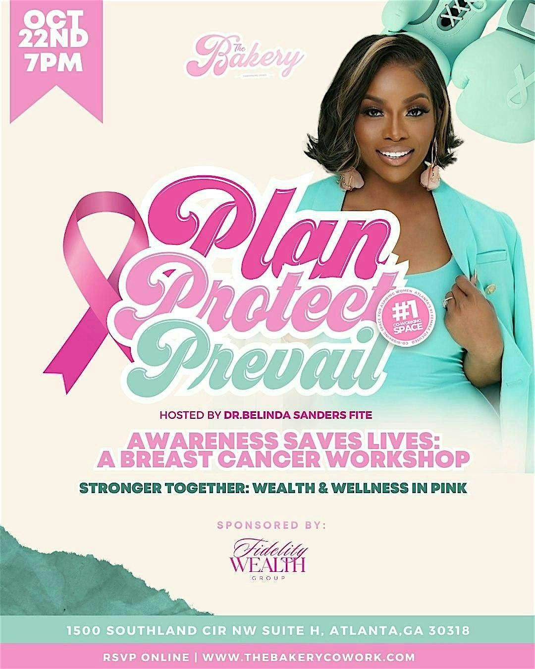 Welcome to Plan Protect Prevail: A Breast Cancer Awareness Workshop! Join us at The Bakery CoWork on October 22, 2025 at 7:00 PM (Eastern Time) for an informative and empowering event. Let's come together to learn about breast cancer prevention, early detection, and support options. Together, we can make a difference! See you there!