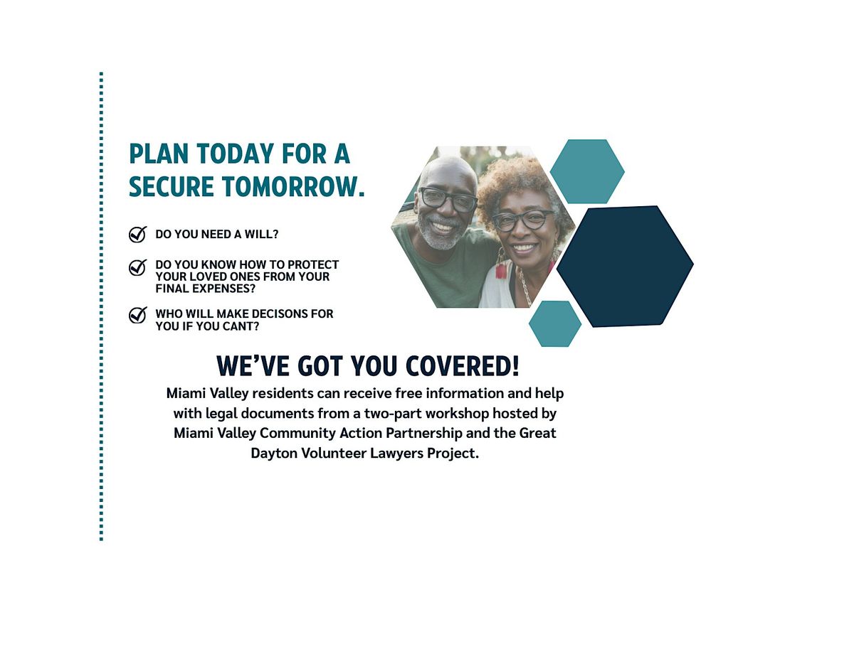 Miami Valley residents can receive free information and help with legal documents from a two-part workshop hosted by Miami Valley Community Action Partnership and the Greater Dayton Volunteer Lawyers Project.