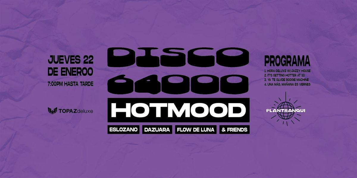 Guillermo Santana (el hombre detrás del proyecto mexicano Hotmood), es el máximo representante de la música disco en nuestro país actualmente; reconocido por muchos, desconocido por otros, su legado ha llegado a diversas partes del mundo. Ha publicado en sellos como Nervous, Star Creature, Kolour, De La Groove y Large Music, así como en su único sello, Discoweey.