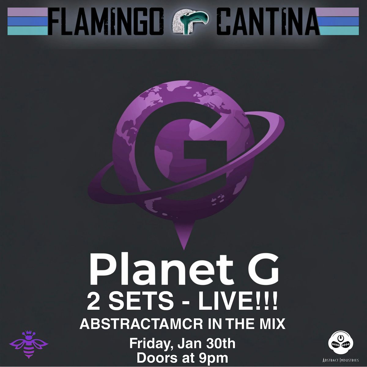 Planet G plays 2 sets of live funk grooves for your mind, body & soul to enjoy! Expect guest sit ins & guest vocalists throughout the night. AbstractAMCR in the mix all night!
