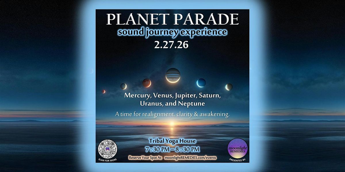 This sound bath is intentionally timed with the planet parade, a rare moment when Mercury, Venus, Jupiter, Saturn, Uranus, and Neptune appear gathered on the same side of the sky.