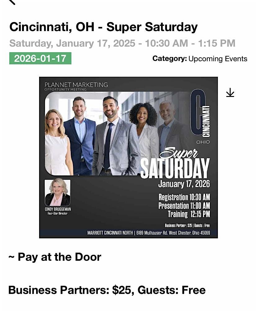 Get ready for an awesome in-person event where you'll connect, learn, and grow with fellow PlanNet Marketing enthusiasts! It's the perfect chance to network, pick up new tips, and boost your skills in a fun, relaxed atmosphere. Don’t miss out—come hang out, share ideas, and supercharge your PlanNet journey this Super Saturday!