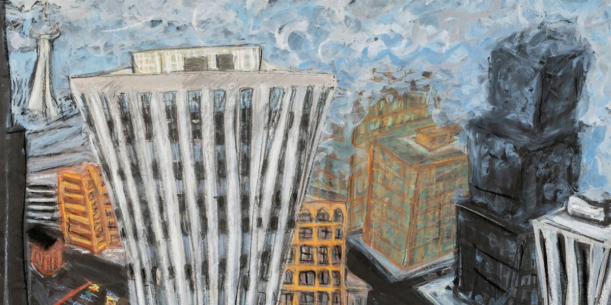 Image credit: Sybil Goldstein, First Canadian noon hours, n.d., mixed media on paper, 25 x 41 in.