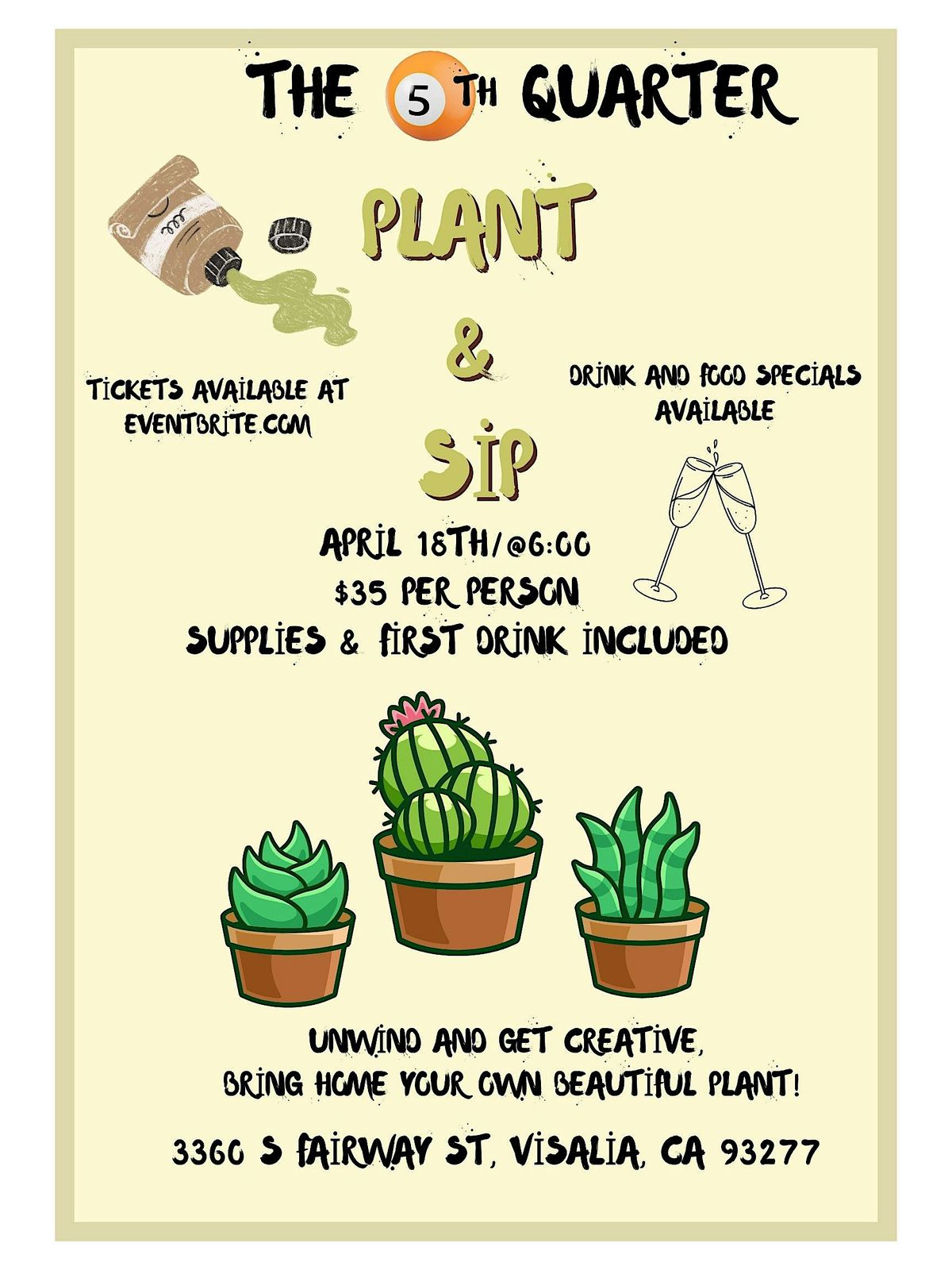 Unwind, get creative, and bring home your own succulent plant! All supplies will be provided to paint and pot your plant.