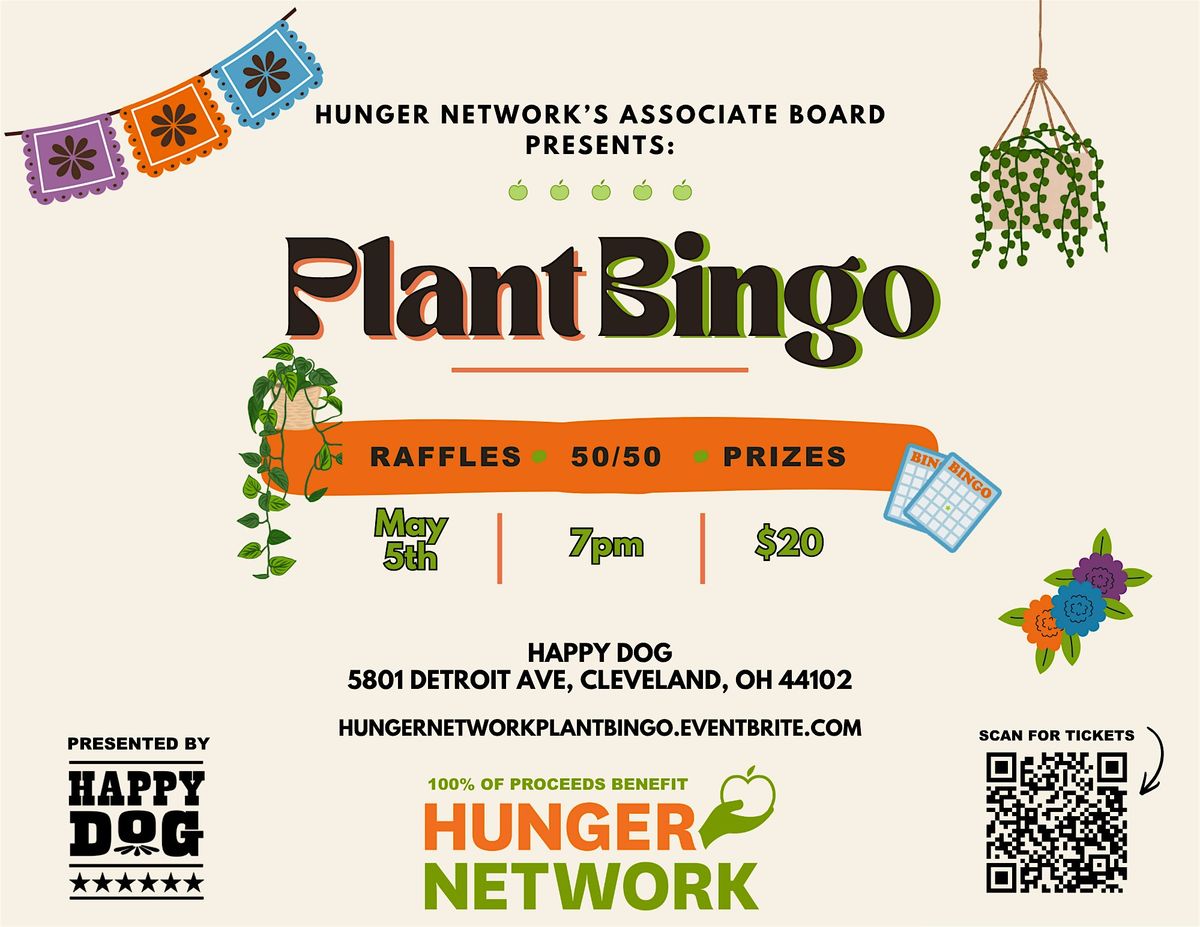 $20 ticket for 10 rounds of Bingo, with different plant and plant related prizes available each round! There will also be a raffle to win surprise themed baskets AND a 50/50 prize. 100% of the proceeds from ticket sales will benefit Hunger Network.