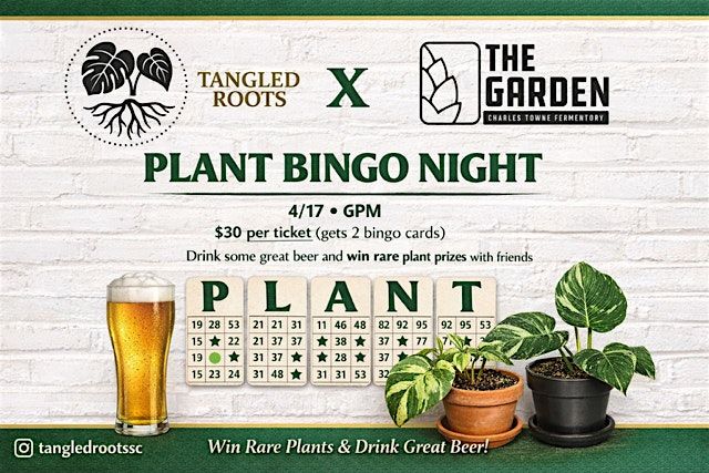 Join us for PLANT BINGO at The Garden by Charles Towne Fermentory, hosted by Caleb Vickery with Tangled Roots LLC.