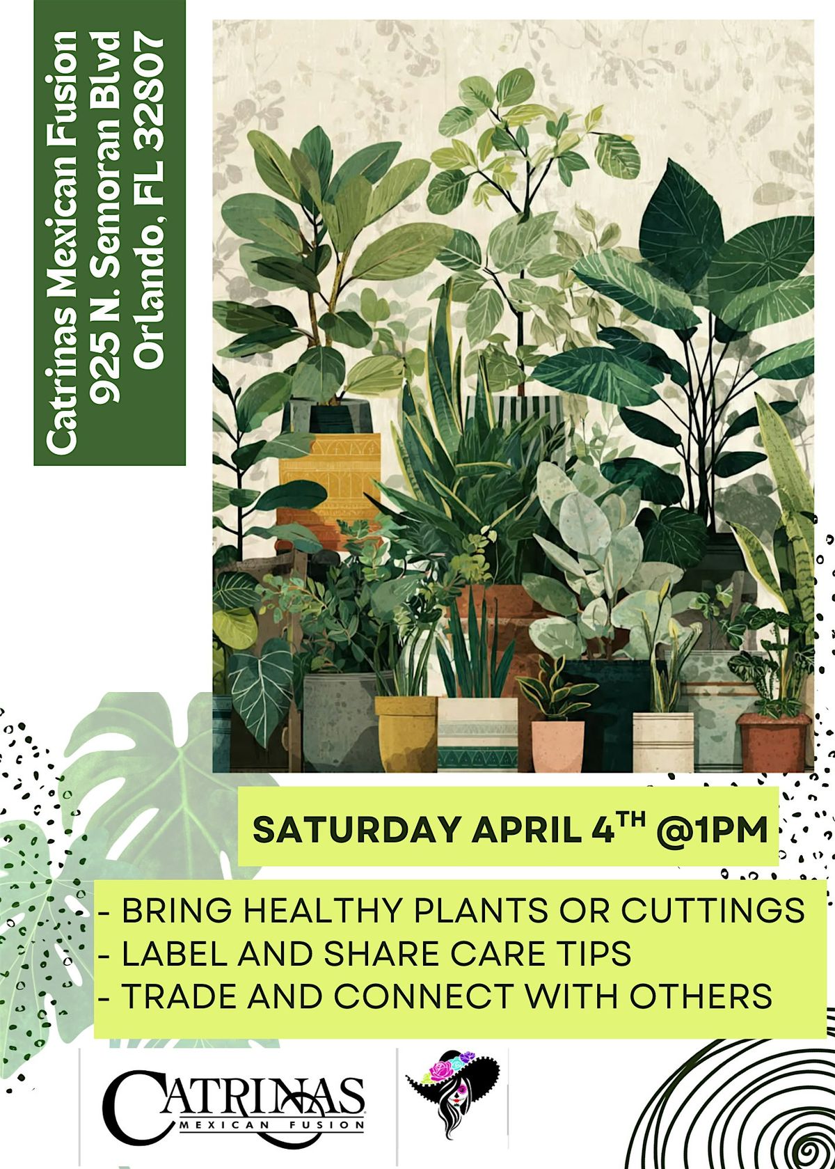Join us for a fun and laid-back Plant Exchange at Catrinas Mexican Fusion! Bring your favorite plants, swap stories, and meet fellow plant lovers. It’s a great way to grow your collection and make new friends.