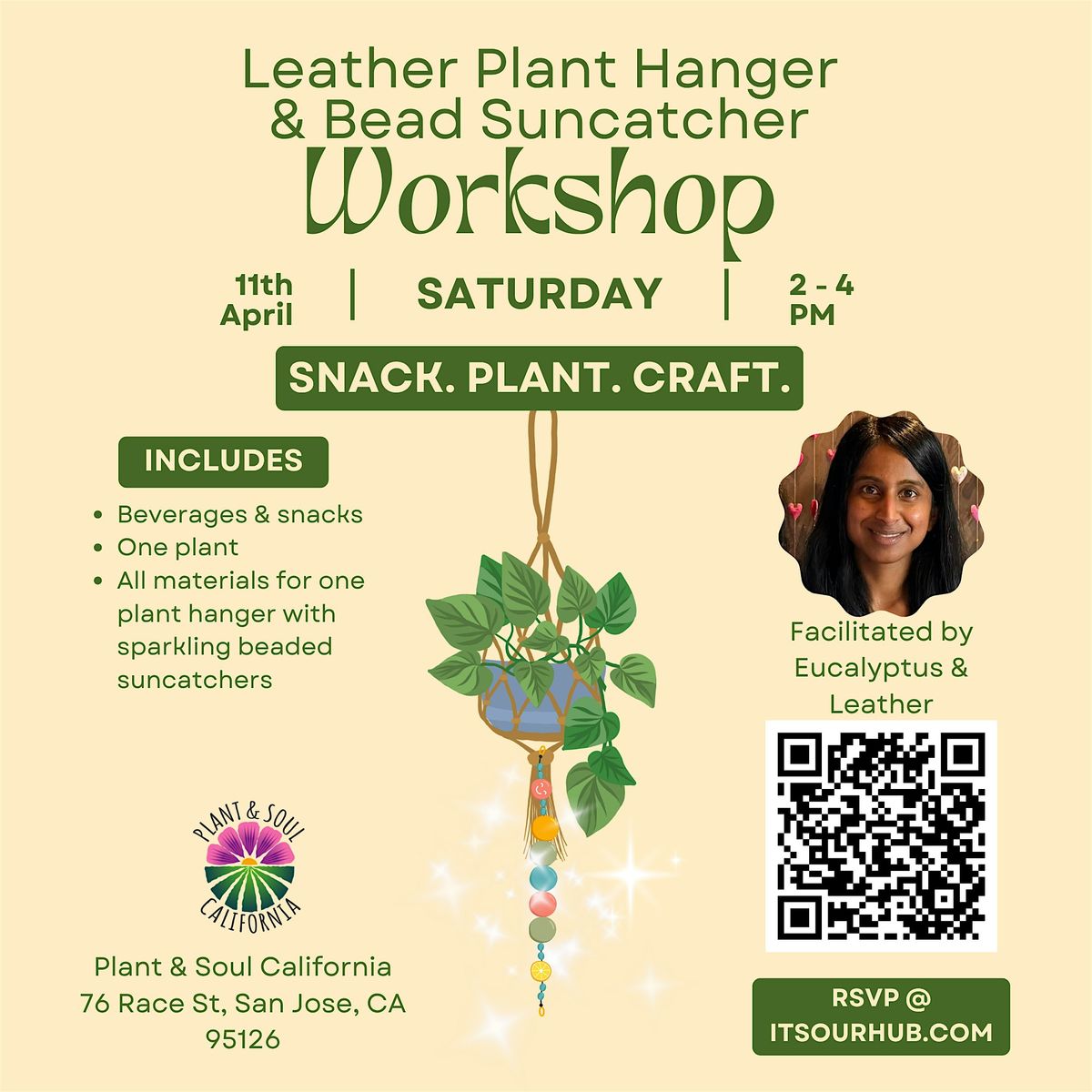 Join us for a relaxing, hands-on Leather Plant Hanger & Suncatcher Workshop with Eucalyptus & Leather. In this guided session, you’ll learn how to knot and braid leather to create a beautiful, handmade plant hanger—perfect for displaying your favorite plant at home. You’ll also create beautiful beaded suncatchers to embellish your hangers to get those beautiful sparkles!