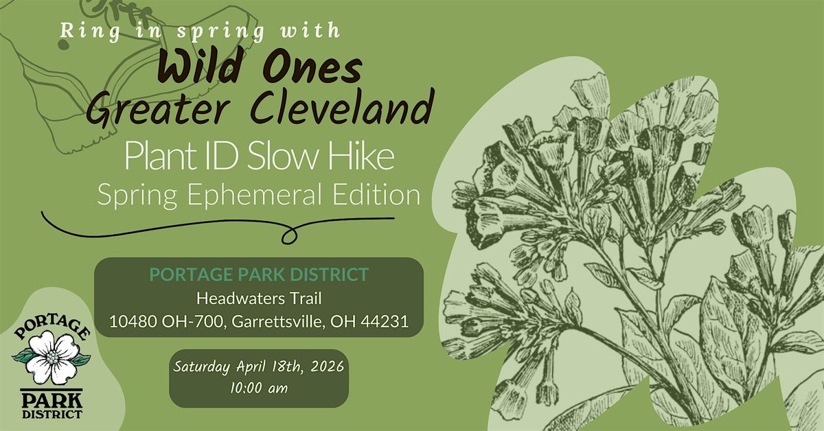 Join us for a leisurely stroll with Wild Ones Greater Cleveland and Portage Park District as we explore the trails and identify spring wildflowers together. No need to rush; we'll be taking our time to appreciate the beauty around us and identify the flowers we encounter along the way. We'll start at Headwaters Trail,10480 OH-700, Garrettsville, OH, 44231.