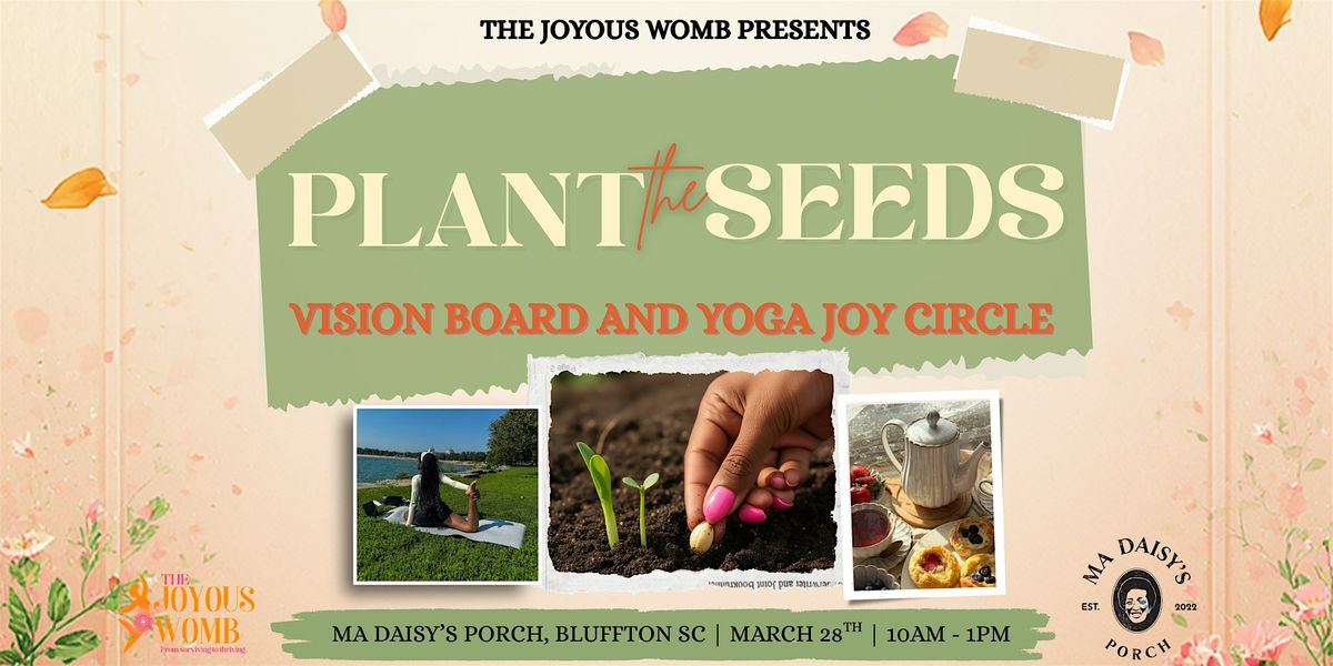 Details: ? Friday, March 28th ? 11:00 AM – 1:00 PM ? Ma Daisy's Porch | Bluffton, SC ? Free & open to the public ☕ Herbal teas, coffee, pastries & fruit by Backus Bakery ✨ Yoga mats & vision board supplies provided
