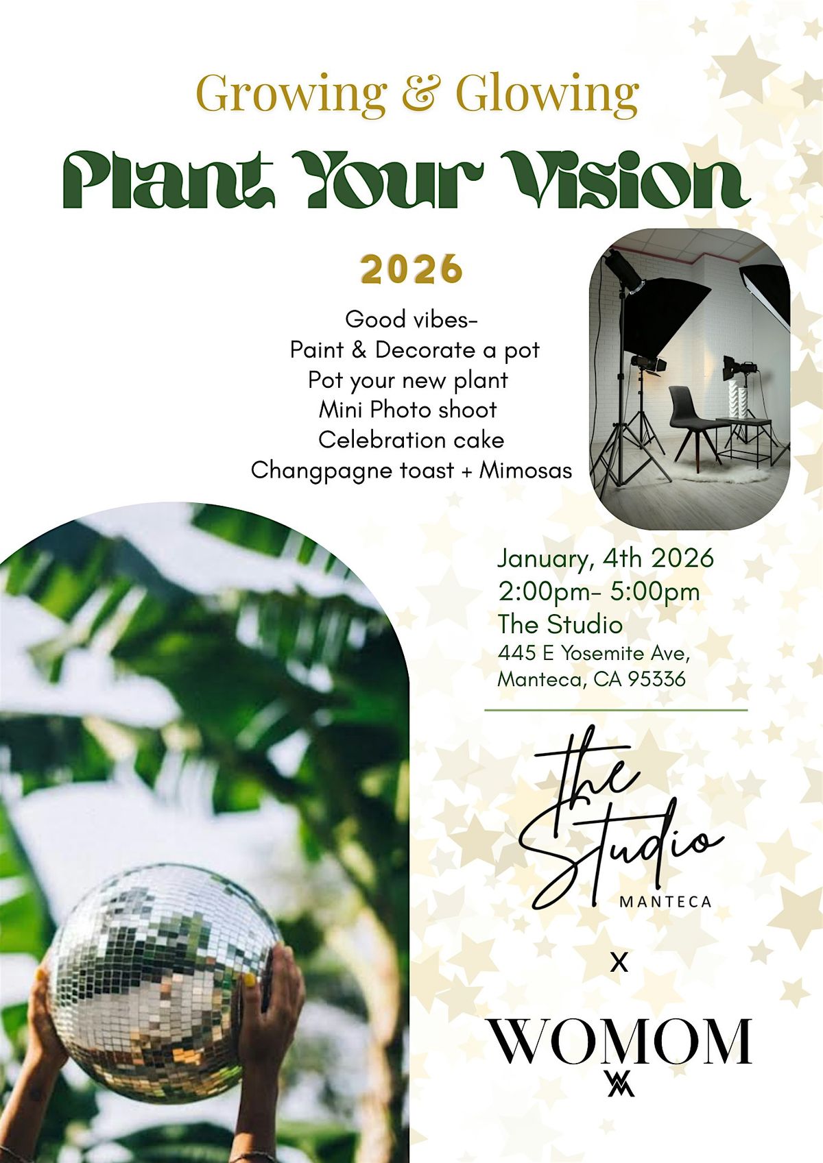 Kick off 2026 with intention, creativity, and community at our Plant Your Vision event at The Studio Manteca. This uplifting experience is all about setting the tone for the year ahead through mindfulness, art, and celebration.