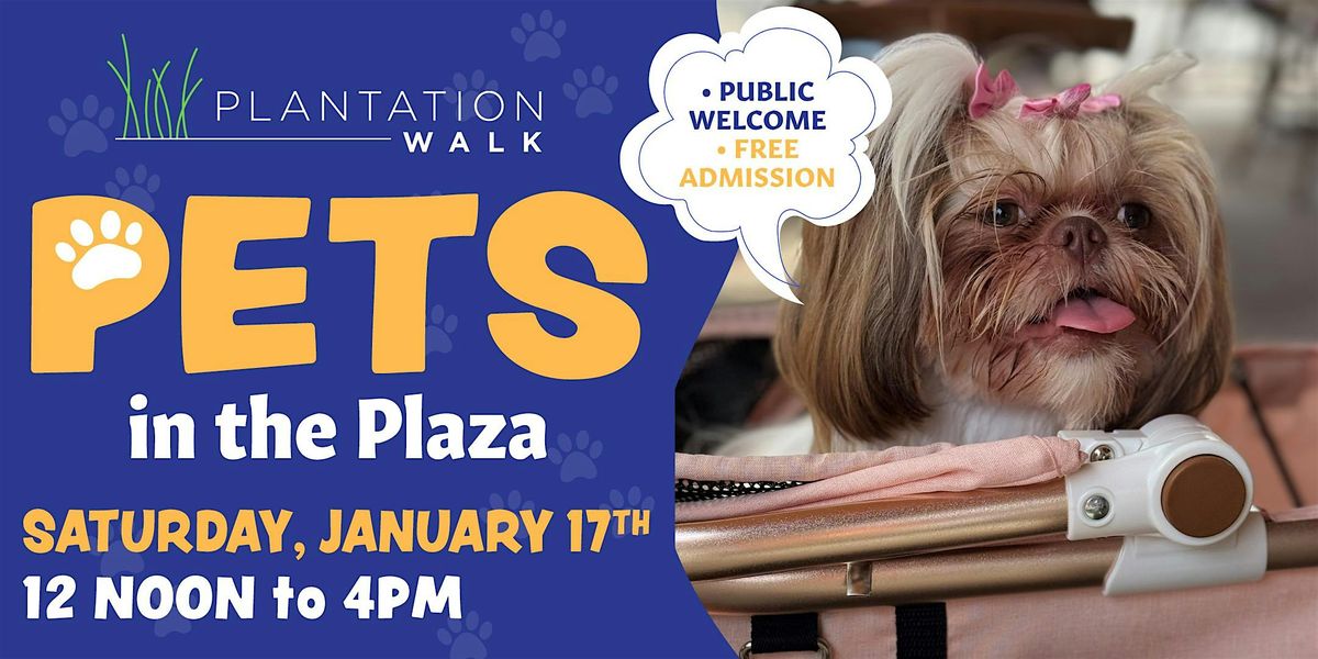 Join Plantation Walk for "Pets in the Plaza" Saturday, January 17th, 2026 - 12pm – 4 pm - FREE Admission & Parking / Public Welcome