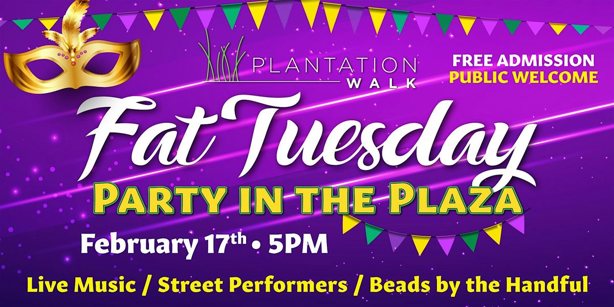 Tuesday, February 17th beginning at 5pm Join Plantation Walk for our Fat Tuesday Party in the Plaza & Mardi Gras Celebration!